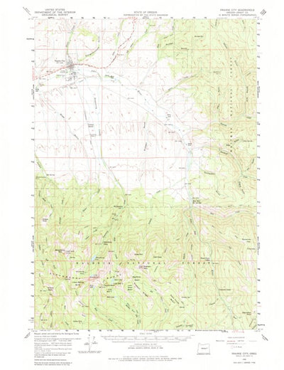 A 1959 historical topographic map of Prairie City in Oregon produced by the United States Geological Survey (USGS). It shows contour lines, place names, water bodies and roads. Map services and data available from U.S. Geological Survey, National Geospatial Program. Map was obtained from https://...