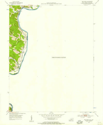 A 1953 historical topographic map of Prichard in West Virginia produced by the United States Geological Survey (USGS). It shows contour lines, place names, water bodies and roads. Map services and data available from U.S. Geological Survey, National Geospatial Program. Map was obtained from https...