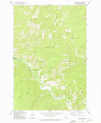 A 1975 historical topographic map of Quigg Peak in Montana produced by the United States Geological Survey (USGS). It shows contour lines, place names, water bodies and roads. Map services and data available from U.S. Geological Survey, National Geospatial Program. Map was obtained from https://w...