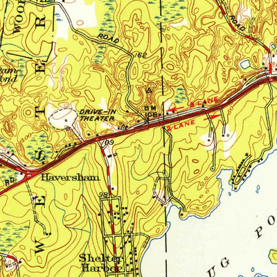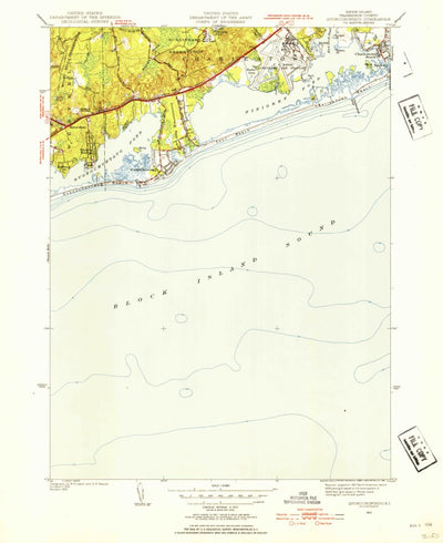 A 1953 historical topographic map of Quonochontaug in Rhode Island produced by the United States Geological Survey (USGS). It shows contour lines, place names, water bodies and roads. Map services and data available from U.S. Geological Survey, National Geospatial Program. Map was obtained from h...
