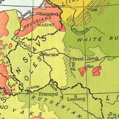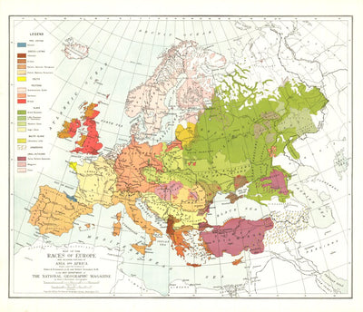 Published in December 1918 at the close of World War I, this map of the races of Europe shows the various peoples who inhabit the continent. An article of the same name was printed in the same issue.