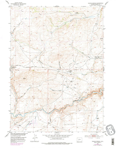 A 1953 historical topographic map of Radium Springs in Wyoming produced by the United States Geological Survey (USGS). It shows contour lines, place names, water bodies and roads. Map services and data available from U.S. Geological Survey, National Geospatial Program. Map was obtained from https...