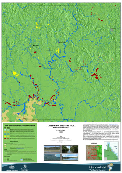 Part of a series of detailed 1:100,000 scale wetland maps created by the State of Queensland, Australia for the purpose of conservation. More information available at: http://wetlandinfo.ehp.qld.gov.au/wetlands/