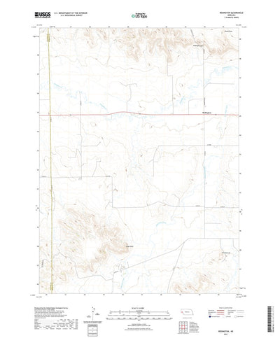 A digital topographic map of Redington in Nebraska produced by the United States Geological Survey (USGS) in 2021. The map is part of the National Map series of 7.5 minute quadrangle maps. It shows contour lines, place names, water bodies and roads. Map services and data available from U.S. Geolo...