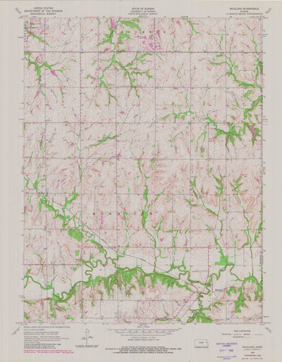 A 1955 historical topographic map of Richland in Kansas produced by the United States Geological Survey (USGS). It shows contour lines, place names, water bodies and roads. Map services and data available from U.S. Geological Survey, National Geospatial Program. Map was obtained from https://www....