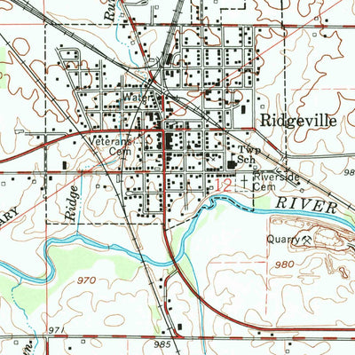 A 1960 historical topographic map of Ridgeville in Indiana produced by the United States Geological Survey (USGS). It shows contour lines, place names, water bodies and roads. Map services and data available from U.S. Geological Survey, National Geospatial Program. Map was obtained from https://w...