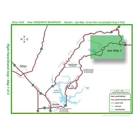 These are the three maps for the Right Hand Branch loop challenging day hike in Bucks Lake Wilderness. More information is available on our website: http://www.chicohiking.org/HighCountry/Right-Hand-Branch.htm