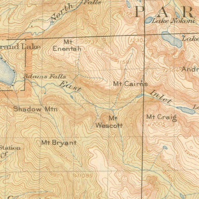 A 1915 historical topographic map of Rocky Mountain National Peak in Colorado produced by the United States Geological Survey (USGS). It shows contour lines, place names, water bodies and roads. Map services and data available from U.S. Geological Survey, National Geospatial Program. Map was obta...