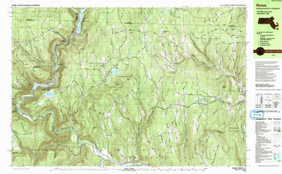 A 1990 historical topographic map of Rowe in Massachusetts produced by the United States Geological Survey (USGS). It shows contour lines, place names, water bodies and roads. Map services and data available from U.S. Geological Survey, National Geospatial Program. Map was obtained from https://w...