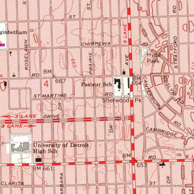 A 1968 historical topographic map of Royal Oak in Michigan produced by the United States Geological Survey (USGS). It shows contour lines, place names, water bodies and roads. Map services and data available from U.S. Geological Survey, National Geospatial Program. Map was obtained from https://w...