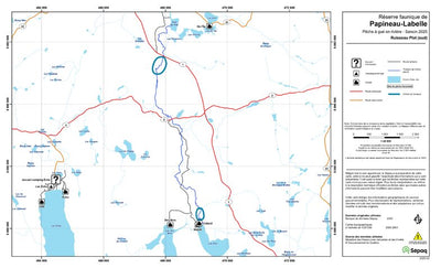 Carte de pêche en rivière de la Sépaq. Selon les données disponibles, la carte peut présenter diverses informations telles que la bathymétrie ou les sites favorables à la pêche.