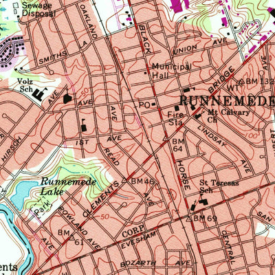 A 1967 historical topographic map of Runnemede in New Jersey produced by the United States Geological Survey (USGS). It shows contour lines, place names, water bodies and roads. Map services and data available from U.S. Geological Survey, National Geospatial Program. Map was obtained from https:/...