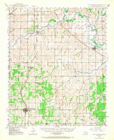 A 1949 historical topographic map of Rush Springs in Oklahoma produced by the United States Geological Survey (USGS). It shows contour lines, place names, water bodies and roads. Map services and data available from U.S. Geological Survey, National Geospatial Program. Map was obtained from https:...