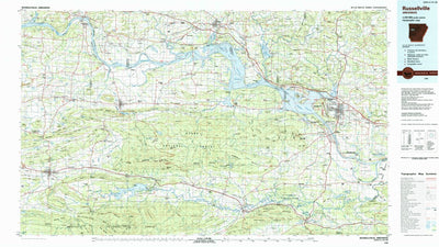 A 1984 historical topographic map of Russellville in Arkansas produced by the United States Geological Survey (USGS). It shows contour lines, place names, water bodies and roads. Map services and data available from U.S. Geological Survey, National Geospatial Program. Map was obtained from https:...