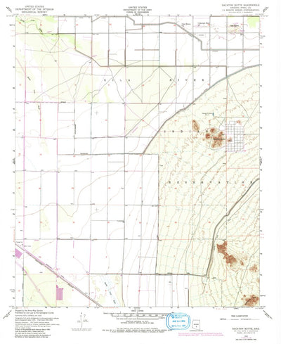 A 1952 historical topographic map of Sacaton Butte in Arizona produced by the United States Geological Survey (USGS). It shows contour lines, place names, water bodies and roads. Map services and data available from U.S. Geological Survey, National Geospatial Program. Map was obtained from https:...