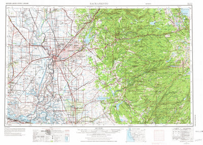 A 1957 historical topographic map of Sacramento in California produced by the United States Geological Survey (USGS). It shows contour lines, place names, water bodies and roads. Map services and data available from U.S. Geological Survey, National Geospatial Program. Map was obtained from https:...