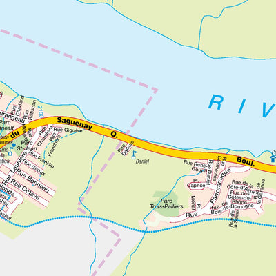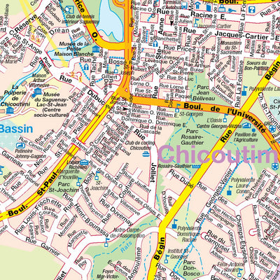 Transportation information such as local roads, major roads, expressways, highway exits, rail lines and stations, bus stations, airports, public tran...