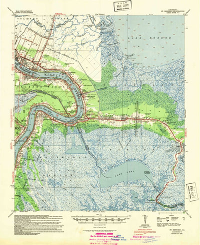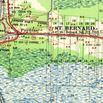 A 1942 historical topographic map of Saint Bernard in Louisiana produced by the United States Geological Survey (USGS). It shows contour lines, place names, water bodies and roads. Map services and data available from U.S. Geological Survey, National Geospatial Program. Map was obtained from http...