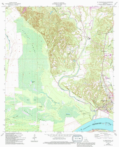 A 1965 historical topographic map of Saint Francisville in Louisiana produced by the United States Geological Survey (USGS). It shows contour lines, place names, water bodies and roads. Map services and data available from U.S. Geological Survey, National Geospatial Program. Map was obtained from...