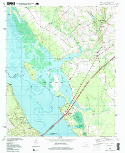 A 1994 historical topographic map of Saint Paul in South Carolina produced by the United States Geological Survey (USGS). It shows contour lines, place names, water bodies and roads. Map services and data available from U.S. Geological Survey, National Geospatial Program. Map was obtained from ht...