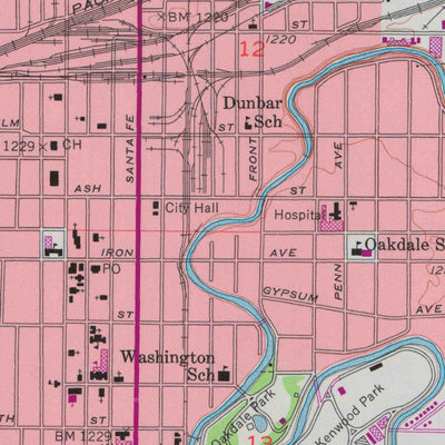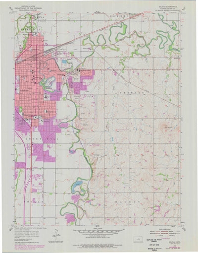A 1955 historical topographic map of Salina in Kansas produced by the United States Geological Survey (USGS). It shows contour lines, place names, water bodies and roads. Map services and data available from U.S. Geological Survey, National Geospatial Program. Map was obtained from https://www.sc...
