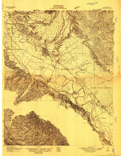 A 1910 historical topographic map of Salinas in California produced by the United States Geological Survey (USGS). It shows contour lines, place names, water bodies and roads. Map services and data available from U.S. Geological Survey, National Geospatial Program. Map was obtained from https://w...