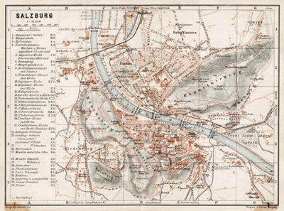 Historical map of Salzburg, 1906, in Austria, then in the Austro-Hungarian Empire, by Wagner & Debes, at the scale of 1:17,750. Digitally restored. A part of the Discus Media 1900 Collection.