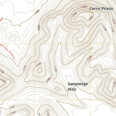 A digital topographic map of Samaniego Hills in Arizona produced by the United States Geological Survey (USGS) in 2021. The map is part of the National Map series of 7.5 minute quadrangle maps. It shows contour lines, place names, water bodies and roads. Map services and data available from U.S. ...