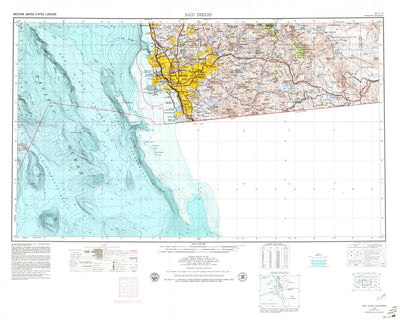 A 1958 historical topographic map of San Diego in California produced by the United States Geological Survey (USGS). It shows contour lines, place names, water bodies and roads. Map services and data available from U.S. Geological Survey, National Geospatial Program. Map was obtained from https:/...