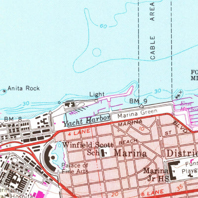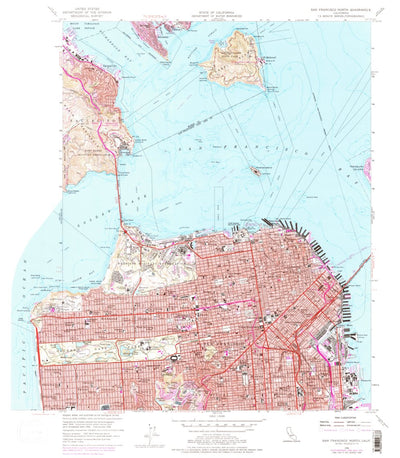 A 1956 historical topographic map of San Francisco North in California produced by the United States Geological Survey (USGS). It shows contour lines, place names, water bodies and roads. Map services and data available from U.S. Geological Survey, National Geospatial Program. Map was obtained fr...