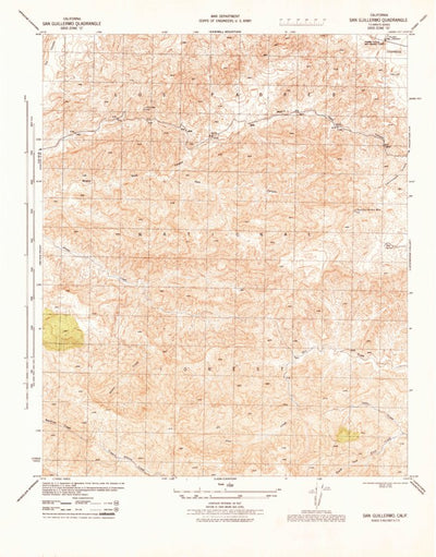 A 1944 historical topographic map of San Guillermo Mountain in California produced by the United States Geological Survey (USGS). It shows contour lines, place names, water bodies and roads. Map services and data available from U.S. Geological Survey, National Geospatial Program. Map was obtained...