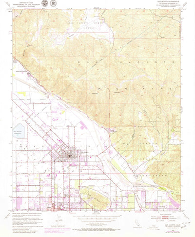 A 1953 historical topographic map of San Jacinto in California produced by the United States Geological Survey (USGS). It shows contour lines, place names, water bodies and roads. Map services and data available from U.S. Geological Survey, National Geospatial Program. Map was obtained from https...