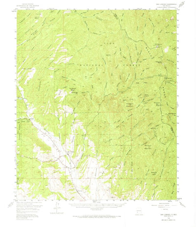 A 1956 historical topographic map of San Lorenzo in New Mexico produced by the United States Geological Survey (USGS). It shows contour lines, place names, water bodies and roads. Map services and data available from U.S. Geological Survey, National Geospatial Program. Map was obtained from https...