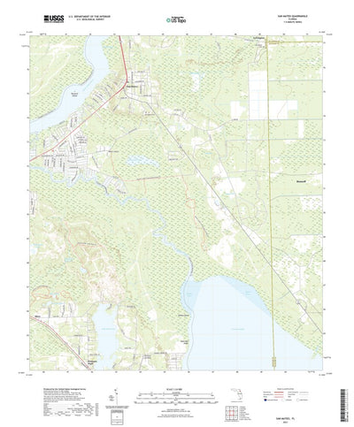 A digital topographic map of San Mateo in Florida produced by the United States Geological Survey (USGS) in 2021. The map is part of the National Map series of 7.5 minute quadrangle maps. It shows contour lines, place names, water bodies and roads. Map services and data available from U.S. Geolog...