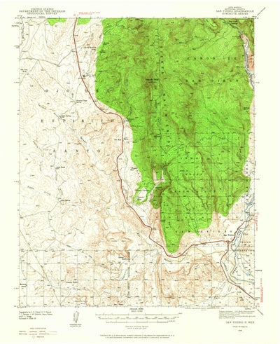 A 1939 historical topographic map of San Ysidro in New Mexico produced by the United States Geological Survey (USGS). It shows contour lines, place names, water bodies and roads. Map services and data available from U.S. Geological Survey, National Geospatial Program. Map was obtained from https:...