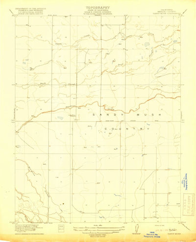 A 1918 historical topographic map of Sandy Mush in California produced by the United States Geological Survey (USGS). It shows contour lines, place names, water bodies and roads. Map services and data available from U.S. Geological Survey, National Geospatial Program. Map was obtained from https:...
