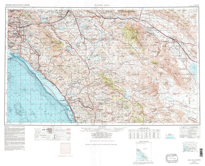 A 1959 historical topographic map of Santa Ana in California produced by the United States Geological Survey (USGS). It shows contour lines, place names, water bodies and roads. Map services and data available from U.S. Geological Survey, National Geospatial Program. Map was obtained from https:/...