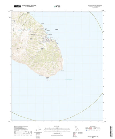 A digital topographic map of Santa Catalina East in California produced by the United States Geological Survey (USGS) in 2022. The map is part of the National Map series of 7.5 minute quadrangle maps. It shows contour lines, place names, water bodies and roads. Map services and data available fro...