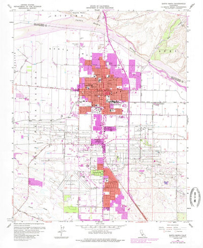 A 1959 historical topographic map of Santa Maria in California produced by the United States Geological Survey (USGS). It shows contour lines, place names, water bodies and roads. Map services and data available from U.S. Geological Survey, National Geospatial Program. Map was obtained from https...
