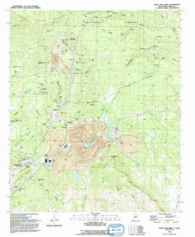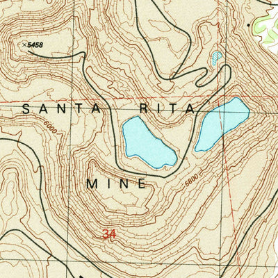 A 1992 historical topographic map of Santa Rita Mine in New Mexico produced by the United States Geological Survey (USGS). It shows contour lines, place names, water bodies and roads. Map services and data available from U.S. Geological Survey, National Geospatial Program. Map was obtained from h...