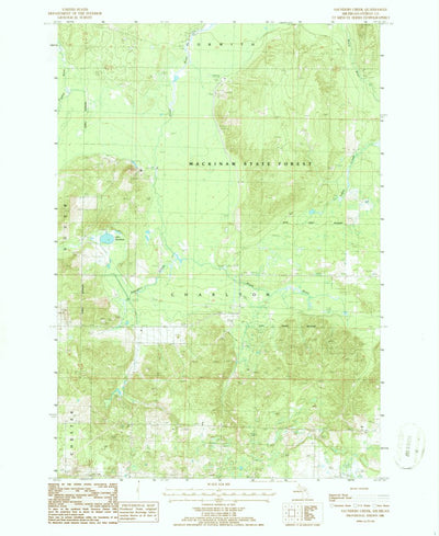 A 1986 historical topographic map of Saunders Creek in Michigan produced by the United States Geological Survey (USGS). It shows contour lines, place names, water bodies and roads. Map services and data available from U.S. Geological Survey, National Geospatial Program. Map was obtained from http...