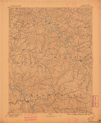 A 1891 historical topographic map of Saylersville in Kentucky produced by the United States Geological Survey (USGS). It shows contour lines, place names, water bodies and roads. Map services and data available from U.S. Geological Survey, National Geospatial Program. Map was obtained from https:...