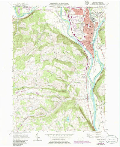 A 1957 historical topographic map of Sayre in Pennsylvania produced by the United States Geological Survey (USGS). It shows contour lines, place names, water bodies and roads. Map services and data available from U.S. Geological Survey, National Geospatial Program. Map was obtained from https://w...