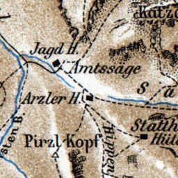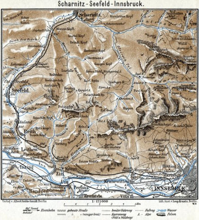 Historical map of the vicinities of Scharnitz, Seefeld and Innsbruck, 1911, in Austria, then in the Austro-Hungarian Empire, by Goldschmidt Albert, at the scale of 1:125,000. Digitally restored. A part of the Discus Media 1900 Collection.