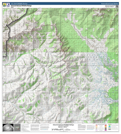 This is a map of Selawik National Wildlife Refuge within the State of Alaska. It depicts the refuge and wilderness boundaries, hillshaded topography, and Federal, State of Alaska, and private ownership boundaries within Selawik NWR.