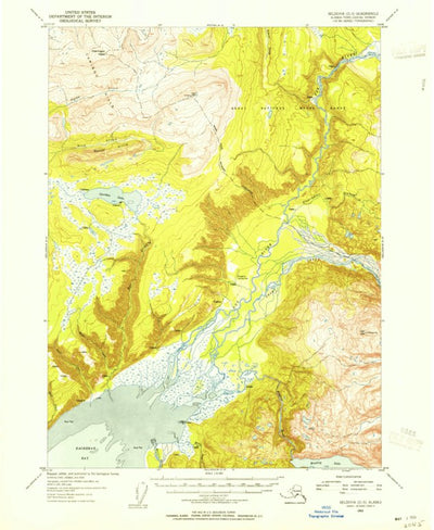 A 1953 historical topographic map of Seldovia D-3 in Alaska produced by the United States Geological Survey (USGS). It shows contour lines, place names, water bodies and roads. Map services and data available from U.S. Geological Survey, National Geospatial Program. Map was obtained from https://...