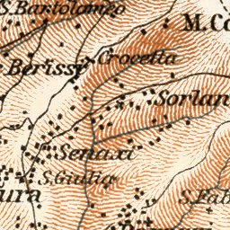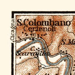 Historical map of Sestri Levante vicinity from 1913, with location in Italy, produced by Wagner & Debes, at the scale of 1:100,000. This digitally re-mastered image is a part of the Discus Media 1900 Collection.