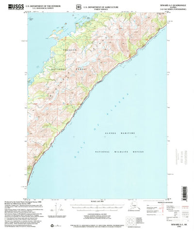 A 1997 historical topographic map of Seward A-1 in Alaska produced by the United States Geological Survey (USGS). It shows contour lines, place names, water bodies and roads. Map services and data available from U.S. Geological Survey, National Geospatial Program. Map was obtained from https://ww...