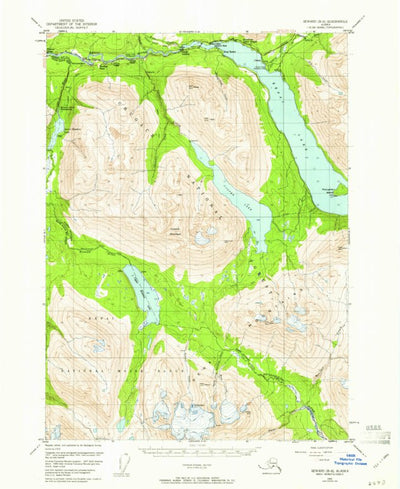 A 1952 historical topographic map of Seward B-8 in Alaska produced by the United States Geological Survey (USGS). It shows contour lines, place names, water bodies and roads. Map services and data available from U.S. Geological Survey, National Geospatial Program. Map was obtained from https://ww...