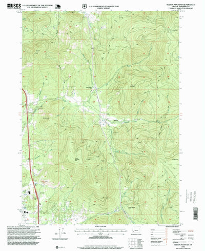 A 1996 historical topographic map of Sexton Mountain in Oregon produced by the United States Geological Survey (USGS). It shows contour lines, place names, water bodies and roads. Map services and data available from U.S. Geological Survey, National Geospatial Program. Map was obtained from https...